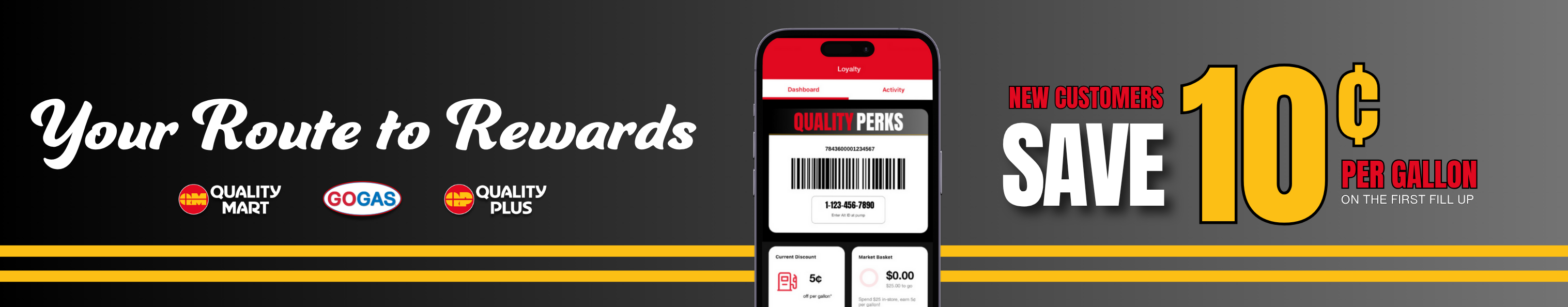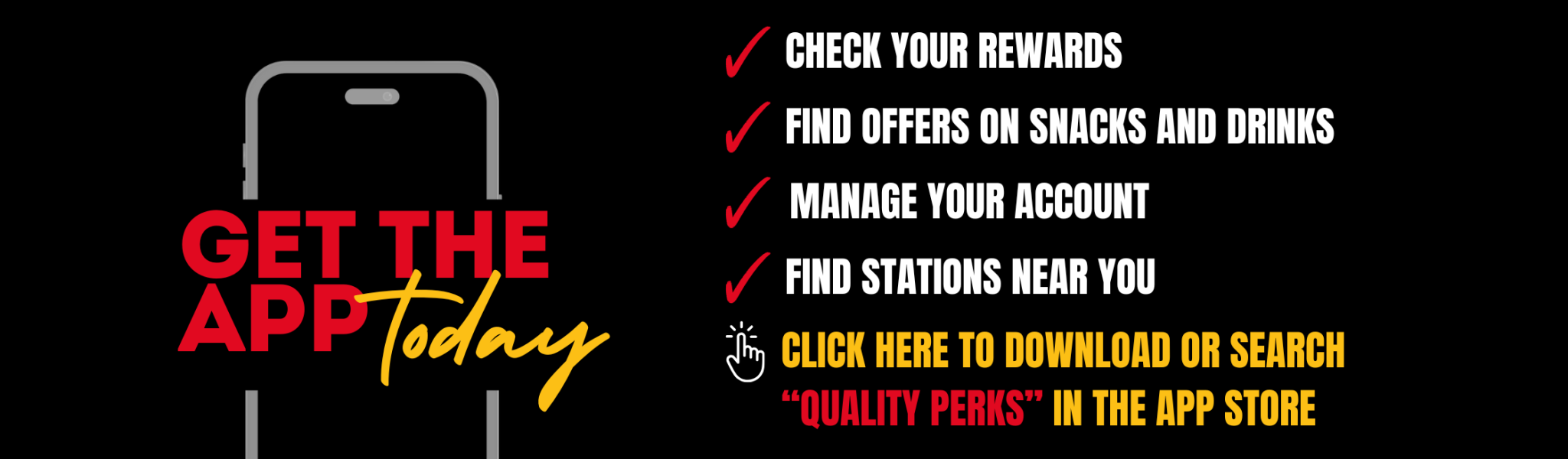Earn rewards every time you fill up and shop in-store. Download the Quality PERKS app to track your rewards, view exclusive discounts, find nearby locations, and much more—all from your phone!